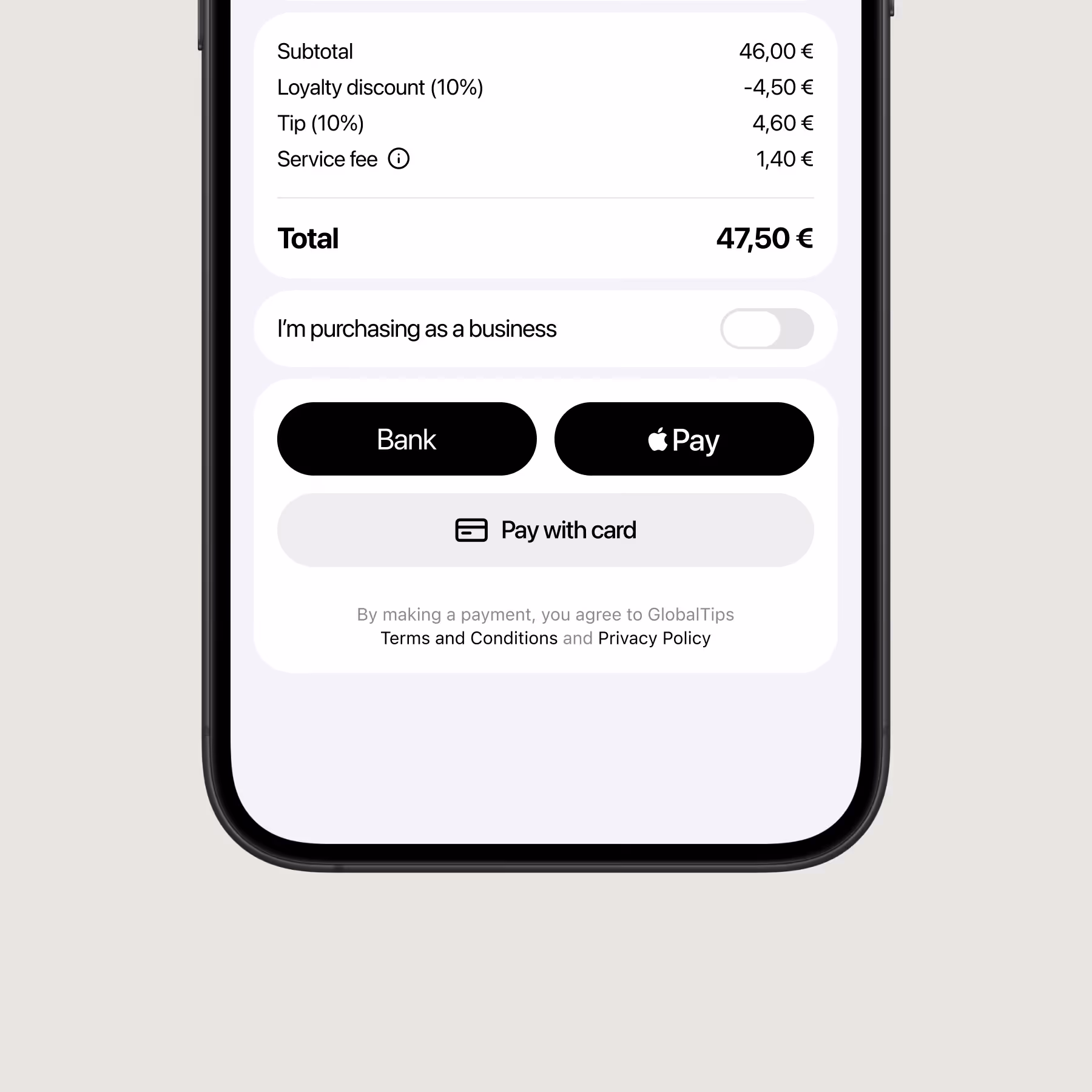 Turime mėnesinį abonementą verslams ir komisinį mokestį už mokėjimus iš svečių (už laiką, kurį jie sutaupo nelaukdami padavėjų). Mokėjimų komisinis mokestis jums yra 0%.